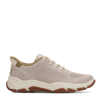 Step Activated technology makes the Rafferty Lace-Up Sneaker the shoe you tie once and never think about again, with a contoured heel piece that lets you slide in and out hands-free. The knit upper wraps the foot in a seamless, sock-like fit, while a padded collar adds comfort at the ankle. Inside, activSOLE cushioning delivers a responsive, plush ride you can feel with every stride, and truTECH® shock absorption in the heel keeps long days feeling short. A sculpted midsole with a wave-contoured profile sits above a rugged rubber outsole with pronounced lugs for sure-footed grip. Orthotic friendly for those who want to customize their support.