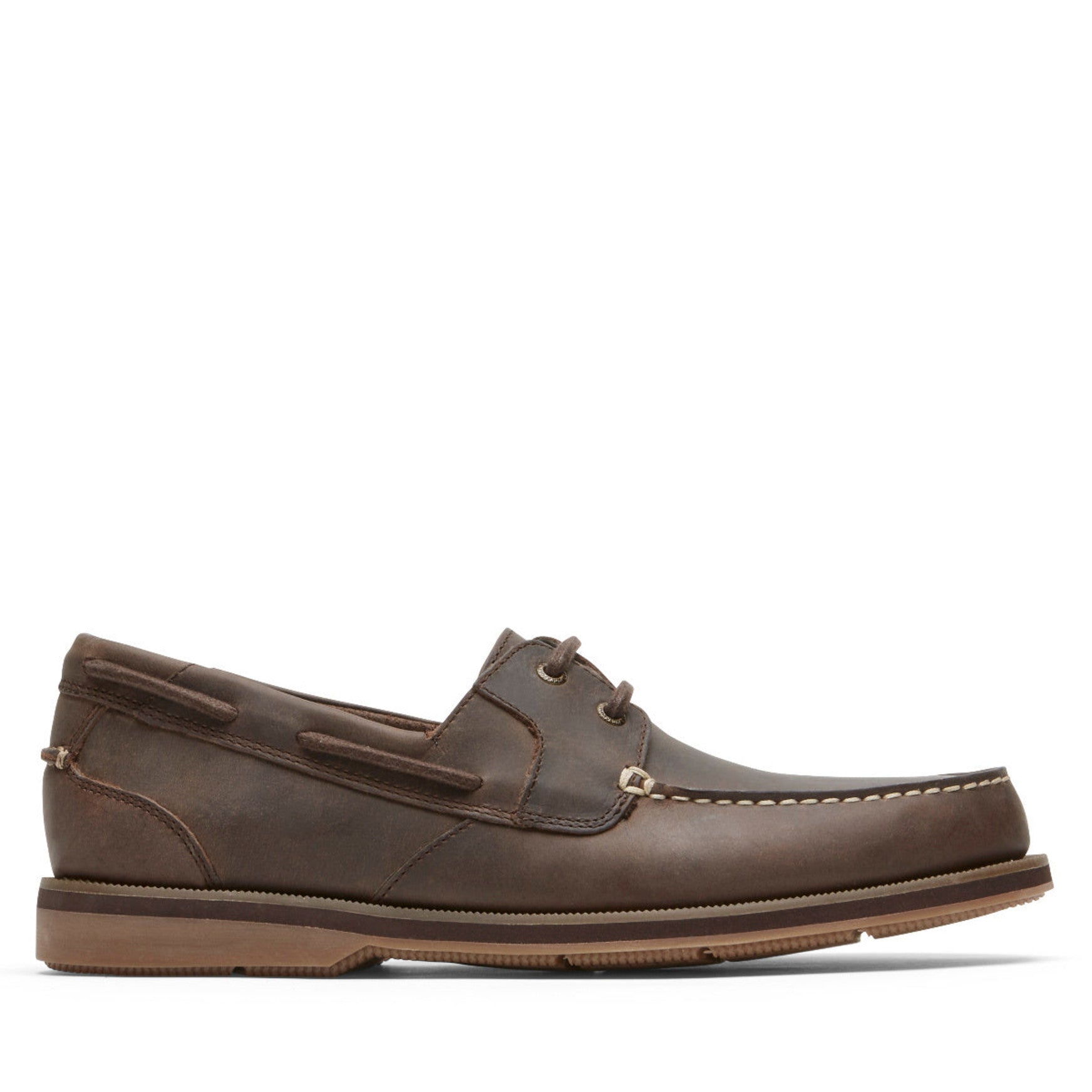 Some shoes carry a New England sensibility you can't fake. The Southport Boat Shoe pairs truTECH® cushioning with a genuine leather upper built around a traditional moc-toe silhouette, complete with detailed stitching along the vamp and a two-eyelet classic lace system. A lightweight contrast sole sits beneath a subtle welt edge, keeping the profile low and the feel easy underfoot. The cushioned footbed delivers long-lasting shock absorption at the heel, so full days on your feet never cut the afternoon short. This is warm-weather confidence, worn well.
