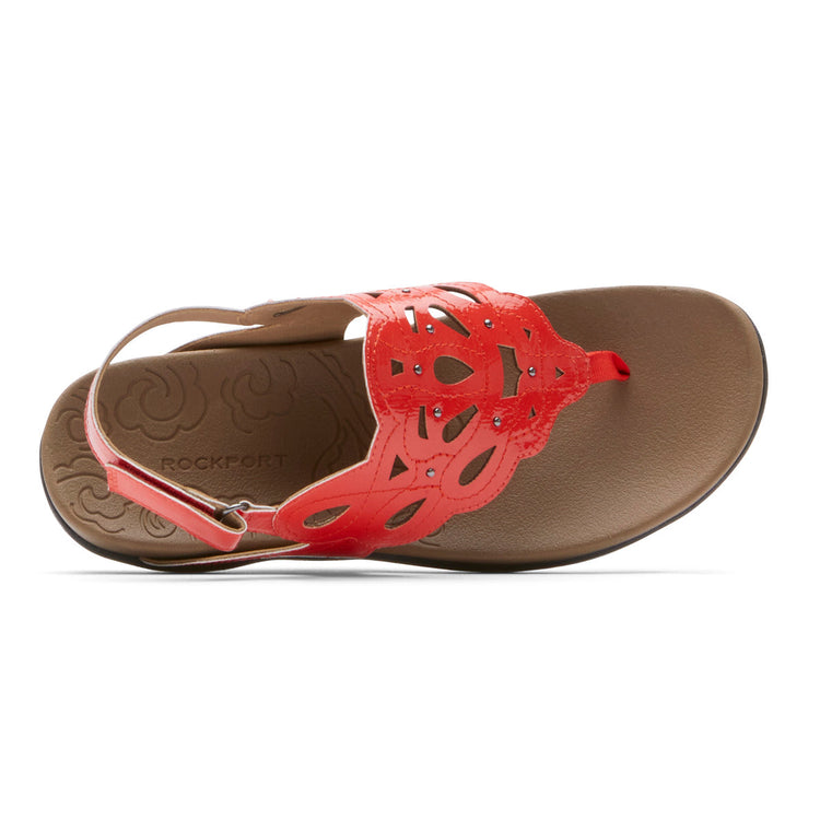 The Sandals have very supportive soles. I chose rockport for the comfort and support. But I also like stylish shoes. These appeared to have both. However, the color is a bit more orange than red. I would rather if they were not so shiny. Otherwise, they w
