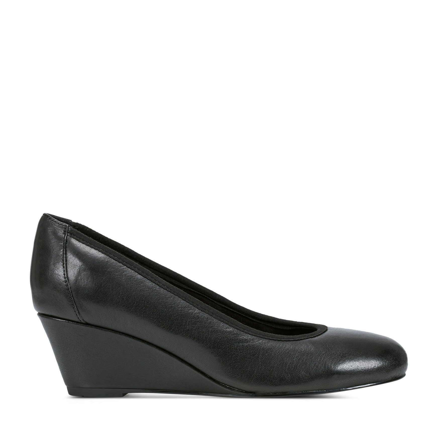 Rockport's Rita Slip-On Wedge pairs a refined almond-toe silhouette with truTECH® cushioning, delivering lightweight shock absorption right where long days demand it most. The clean, unadorned upper comes in both polished leather and rich suede, each finished with a soft fabric binding along the topline for a comfortable, polished fit. A moderate wedge heel provides stable, grounded lift without the fatigue of a traditional pump, while built-in arch support keeps you confident through every hour. This is the kind of wardrobe essential that moves quietly from the office to dinner, earning its place one wear at a time.