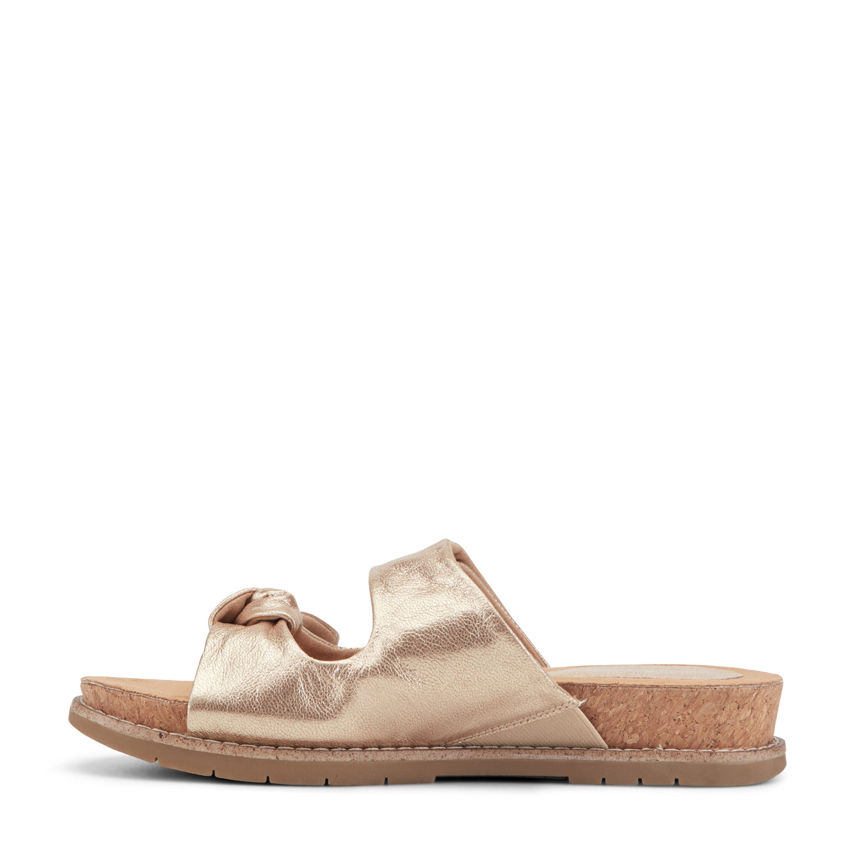 A gathered knot detail at the forefoot gives the Zova Casual Sandal its relaxed, sculptural character, while truTECH® cushioning delivers lightweight shock absorption right where you need it most. The wide two-strap design slips on effortlessly, with a broad upper band secured by a subtle hook-and-loop closure for an adjustable fit. Underfoot, a contoured footbed with arch support cradles each step, and a cork-wrapped midsole adds warmth to the low-profile silhouette. Available in both leather and suede, each offering its own texture and finish. A durable rubber outsole with subtle tread keeps things sure-footed from boardwalk to brunch.