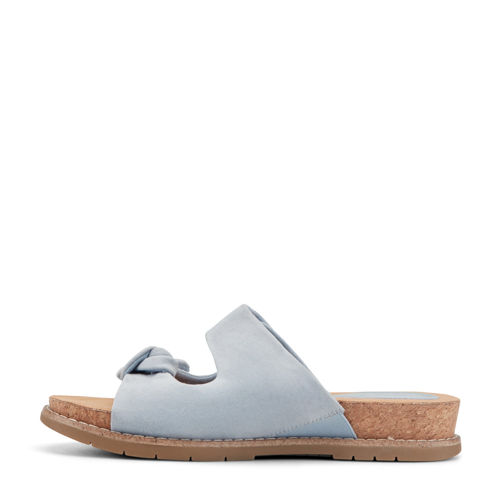 A gathered knot detail at the forefoot gives the Zova Casual Sandal its relaxed, sculptural character, while truTECH® cushioning delivers lightweight shock absorption right where you need it most. The wide two-strap design slips on effortlessly, with a broad upper band secured by a subtle hook-and-loop closure for an adjustable fit. Underfoot, a contoured footbed with arch support cradles each step, and a cork-wrapped midsole adds warmth to the low-profile silhouette. Available in both leather and suede, each offering its own texture and finish. A durable rubber outsole with subtle tread keeps things sure-footed from boardwalk to brunch.